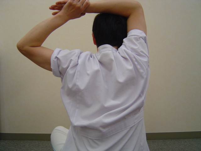 @肩甲骨をひらくストレッチ(後ろからの写真)